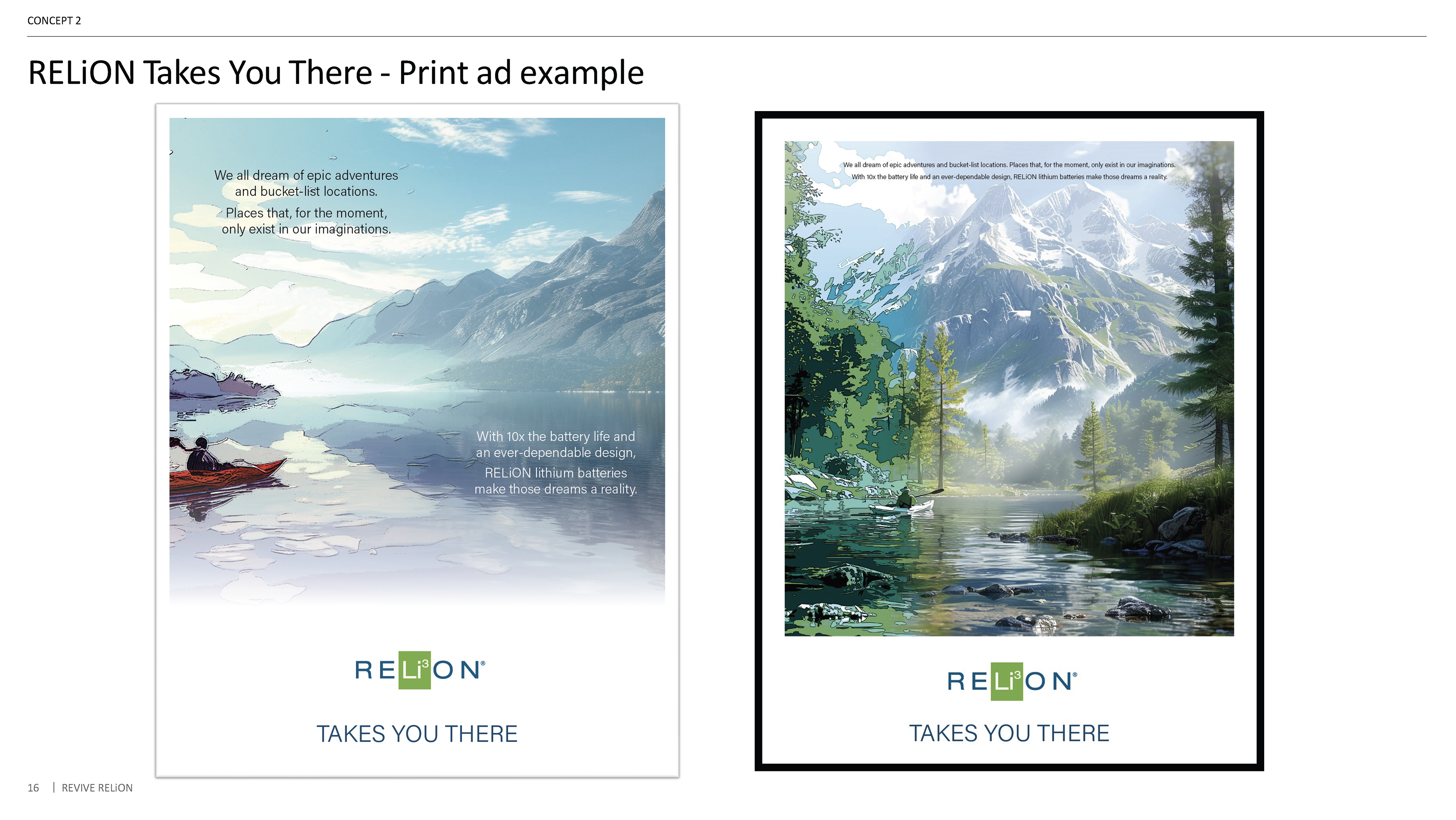 2. “Takes You There” - blended illustration with real photography to show RELiON making once-impossible adventures achievable.