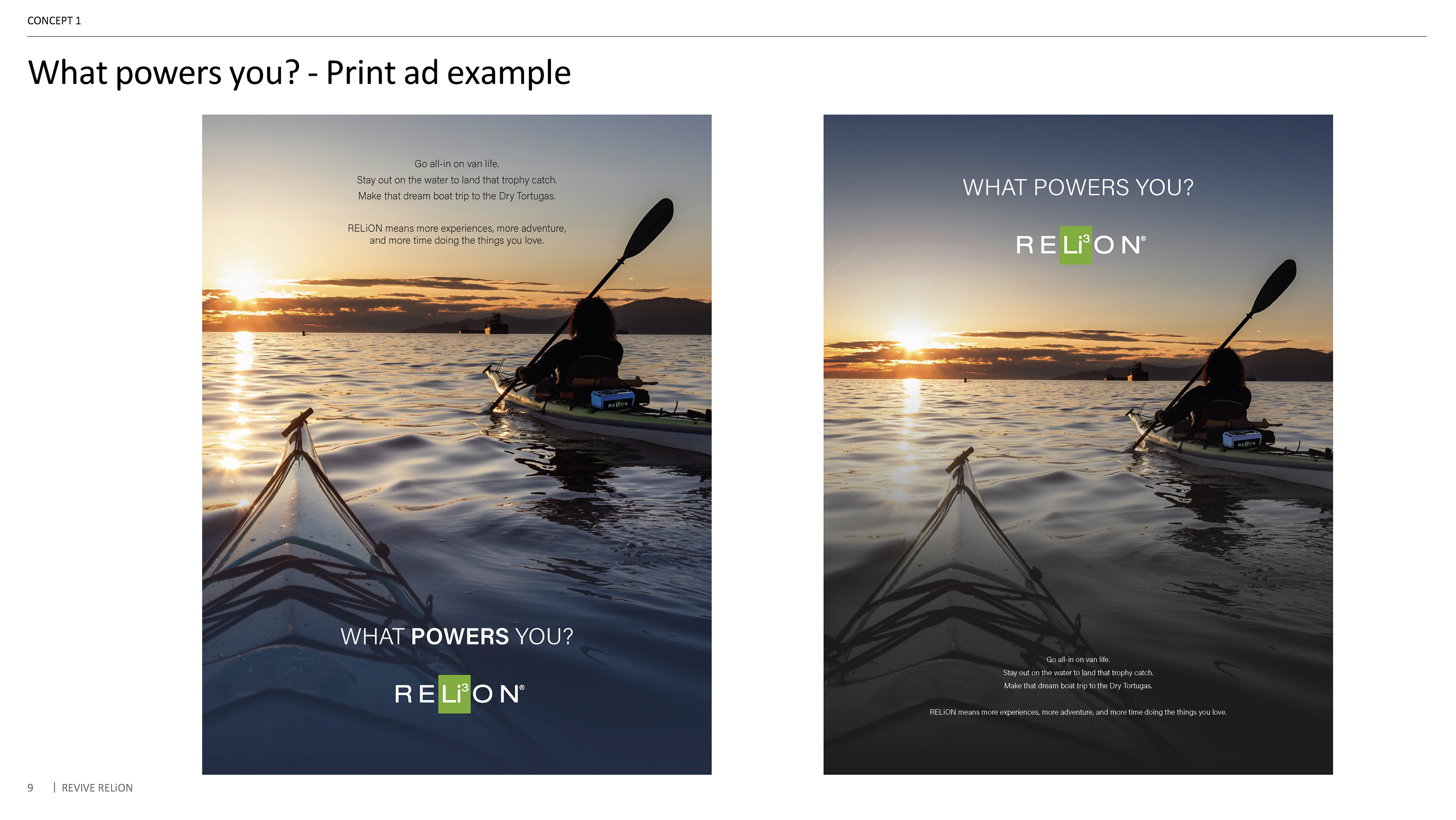 As Senior Designer, I led the visual development and creative articulation of two campaign concepts. I translated strategic briefs into compelling visual narratives, crafted example executions across key channels, and collaborated closely with copy and strategy to align each concept with RELiON’s brand vision.